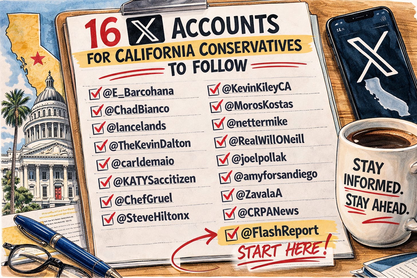 But at some point, you just have to start. So consider this Round One — a first set of X accounts that are well worth following if you care about California politics from a conservative perspective. In fact, since finishing this list, I’ve already thought of at least five more accounts that probably deserve to be included, which means there will almost certainly be a second round — maybe even a third. Still, this is a very good place to begin.