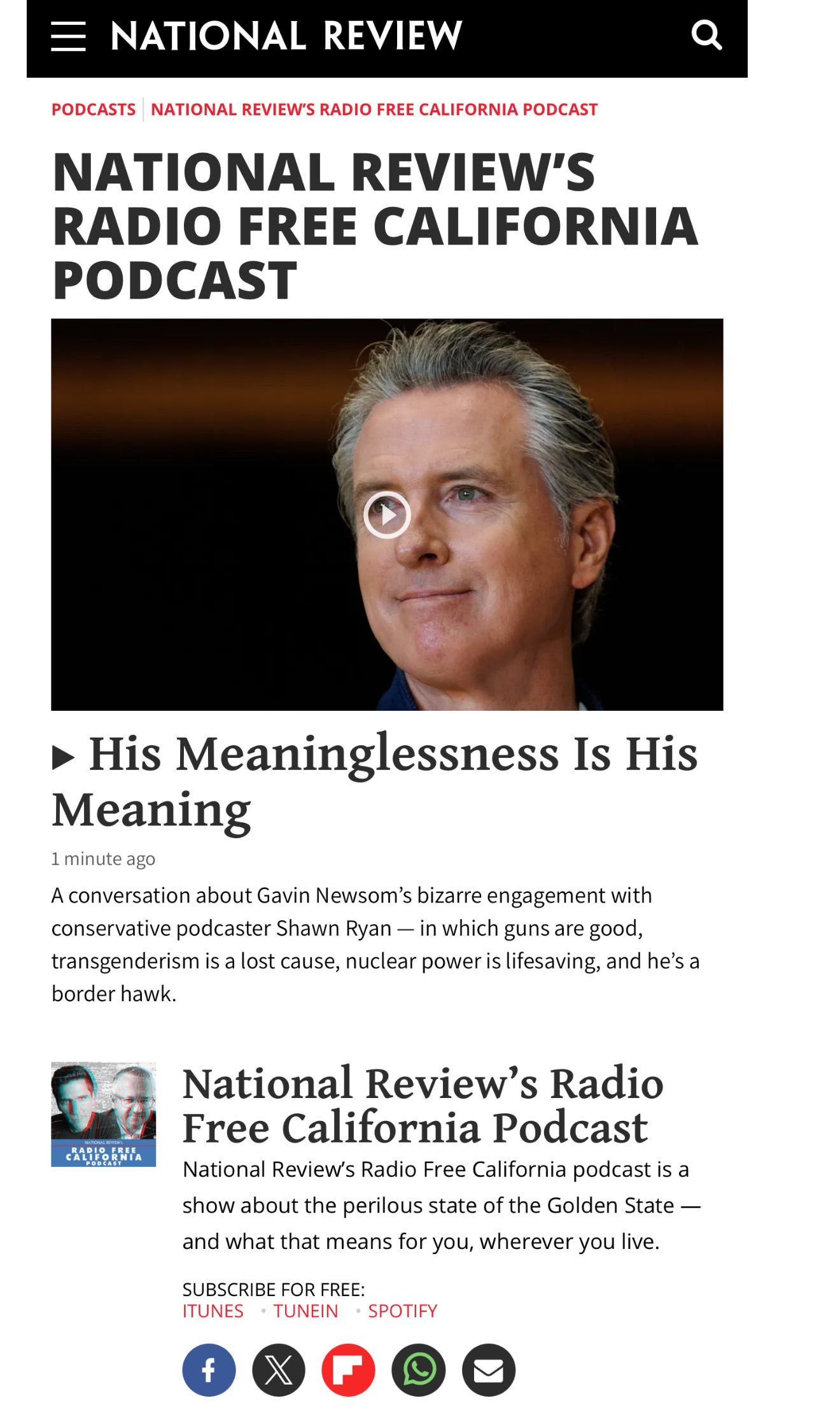 The latest episode of National Review’s Radio Free California is out, and sitting in with regular host Will Swaim is yours truly, subbing for regular co-host David Bahnsen…