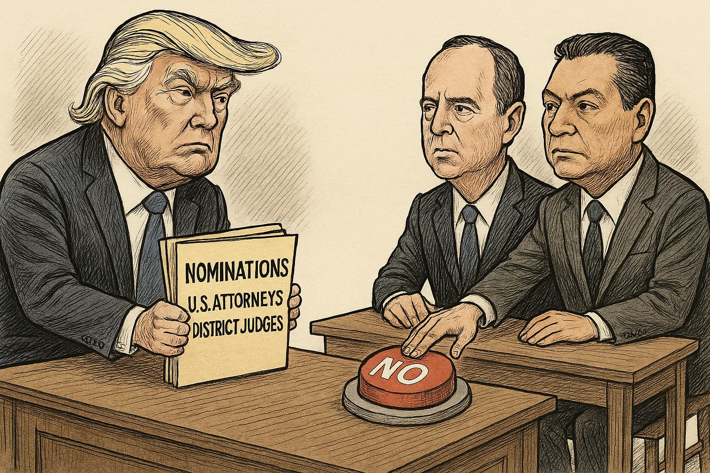 In California, the consequences are immediate. Senators Padilla and Schiff can prevent any Trump nominee to a U.S. Attorney or district judge position from advancing by withholding their blue slips. Even though America has chosen a Republican President, blue states (even ones like California that have millions of Republican voters) block nominees whose only issue is that they share the views of the elected President. What should be a straightforward executive appointment process instead becomes a localized, practical veto, exercised quietly and without any public vote.
