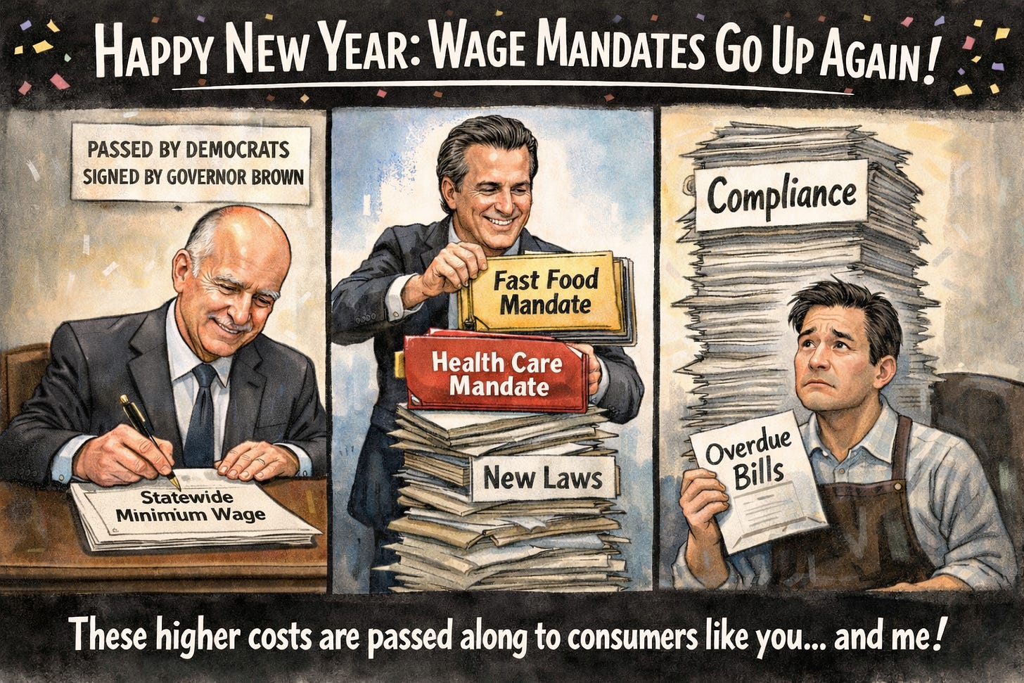 A new statewide wage hike takes effect January 1, adding to a growing list of mandates that are adding to California’s lack of affordability