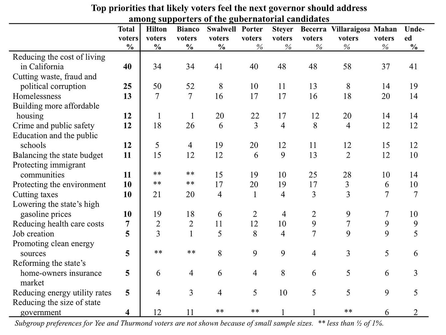 Equally important, the electorate itself remains disengaged. Large portions of voters still report having no opinion of the candidates, and not a single major candidate is viewed more positively than negatively statewide.