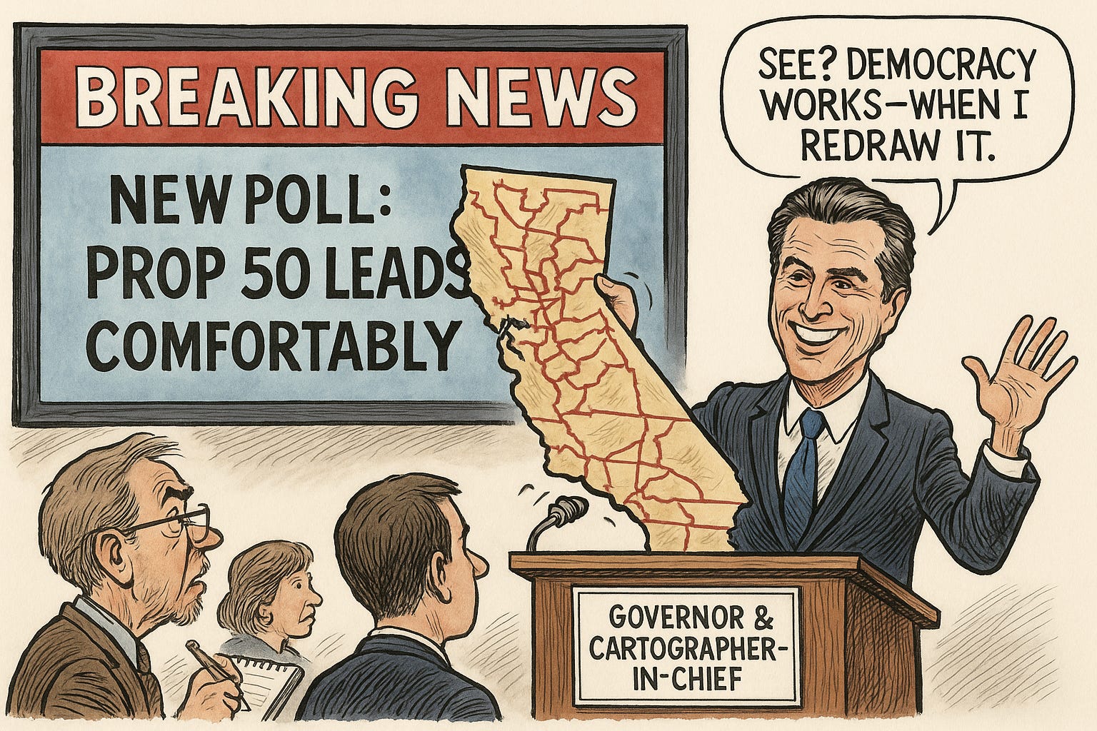 Proposition 50, Governor Gavin Newsom’s bold vision, is rewriting California’s political map — in every sense. Designed to promote Newsom (as he prepares a formal run for the White House) and he views as federal (Trump) overreach, this redistricting initiative redraws congressional lines to grow California’s influence in Washington. Its passage will flip five Republican House Seats to Democratic, and lock up the handful of competitive districts for Democrats as well. This latest CBS/YouGov opinion survey shows Newsom’s gamble appears to be working — largely due to the blue-ness of the state, and the apparently decision by monied GOP interests to hold back on needed major spending.