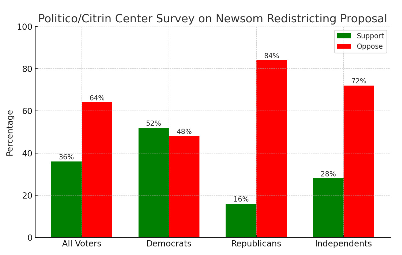 *Breaking News* New Politico Survey Has Newsom’s Play For Mid-Decade Redistricting of House Lines In Big Trouble