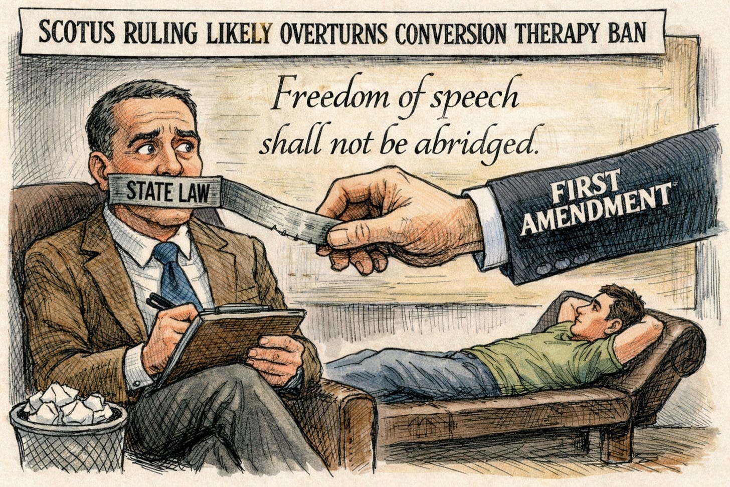 Breaking News: This morning, in a decision authored by Justice Neil Gorsuch, U.S. Supreme Court issued a major First Amendment ruling that places California’s ban on so-called “conversion therapy” on legally unstable ground. While the case arose from Colorado, the Court’s reasoning directly threatens the structure of California law.