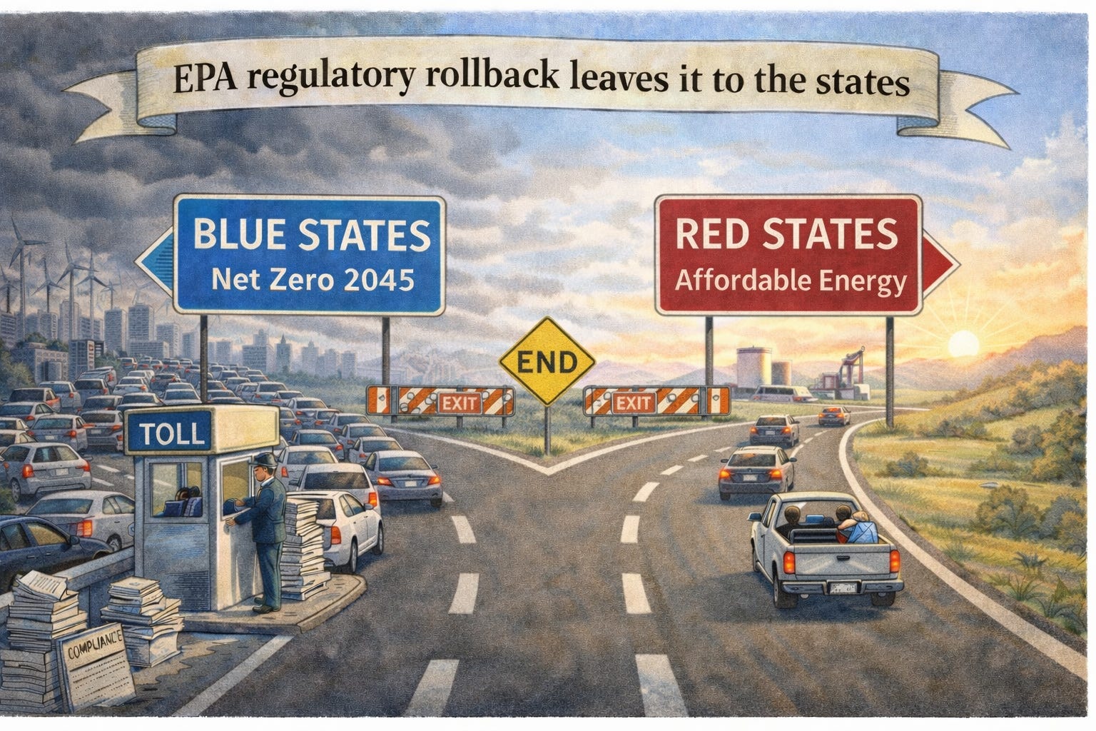 This shift will expose an already widening divide. Many red states have generally pursued lower taxes, lighter regulation, and relatively more affordable energy. Blue states, led by California, have chosen higher taxes, more regulation, and a larger role for government — all justified by climate absolutism.