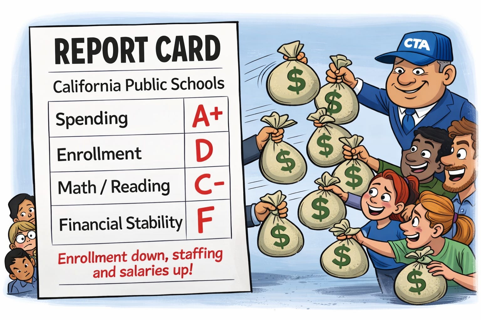 Because California funds its schools largely based on student attendance, fewer students mean less revenue. That’s not controversial—it’s just how the system works. What’s harder to explain is why that reality isn’t shaping decisions in many districts.