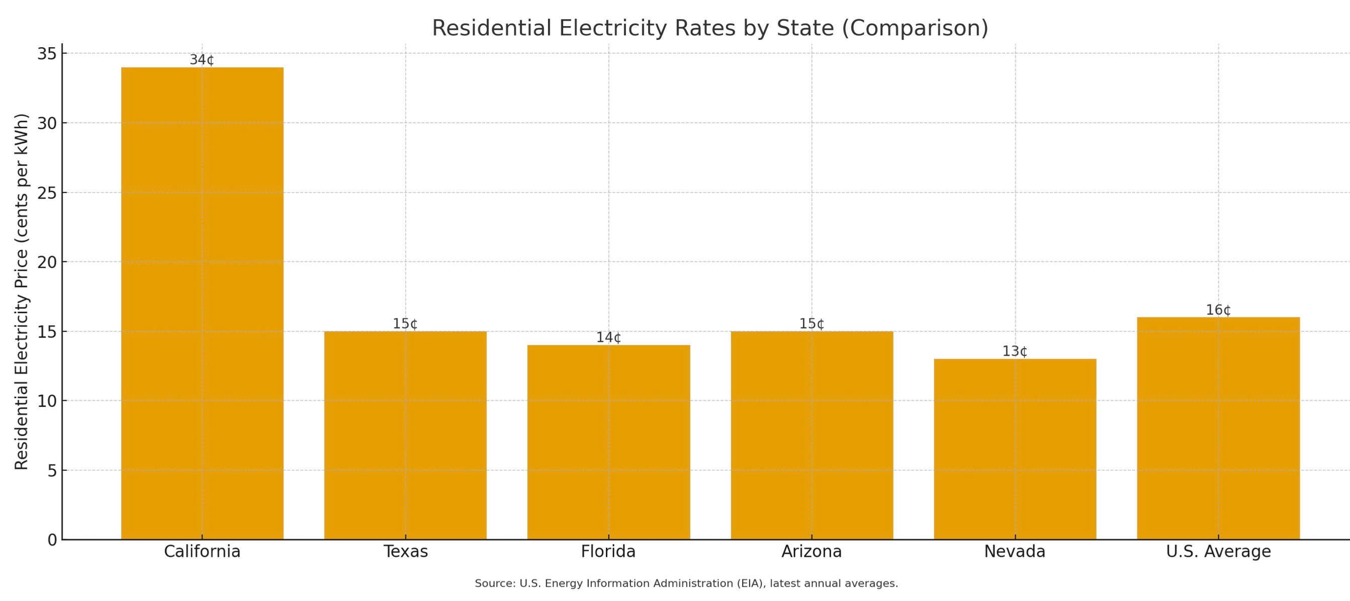 Californians pay an extra, built-in premium every time they turn on the lights. According to the U.S. Energy Information Administration, residential electricity in California now costs about 80 percent more than it does in the average American state.