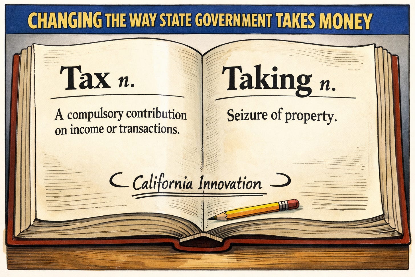 We will be writing a lot about this proposed “net-worth taking” of California’s billionaires. There’s a lot to not like about it. But first, we have to deal with the big lie: this is not a tax, it’s a taking.
