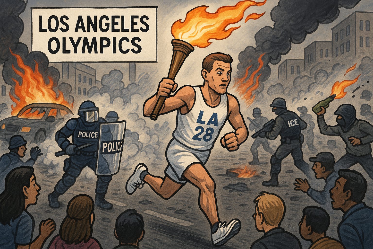 Los Angeles County alone has some 75,000 people living on the streets today. Added to protests, troop deployments, and nightly curfews, the spectacle defies Olympic ideals of freedom and harmony. Having learned from experience that the 1992 LA riots cost $800 million and current restlessness already surpassing more optimistic estimates, the IOC must weigh whether the 2028 Games will prevent it from being a scripted spectacle—or an international symbol of internal unrest.