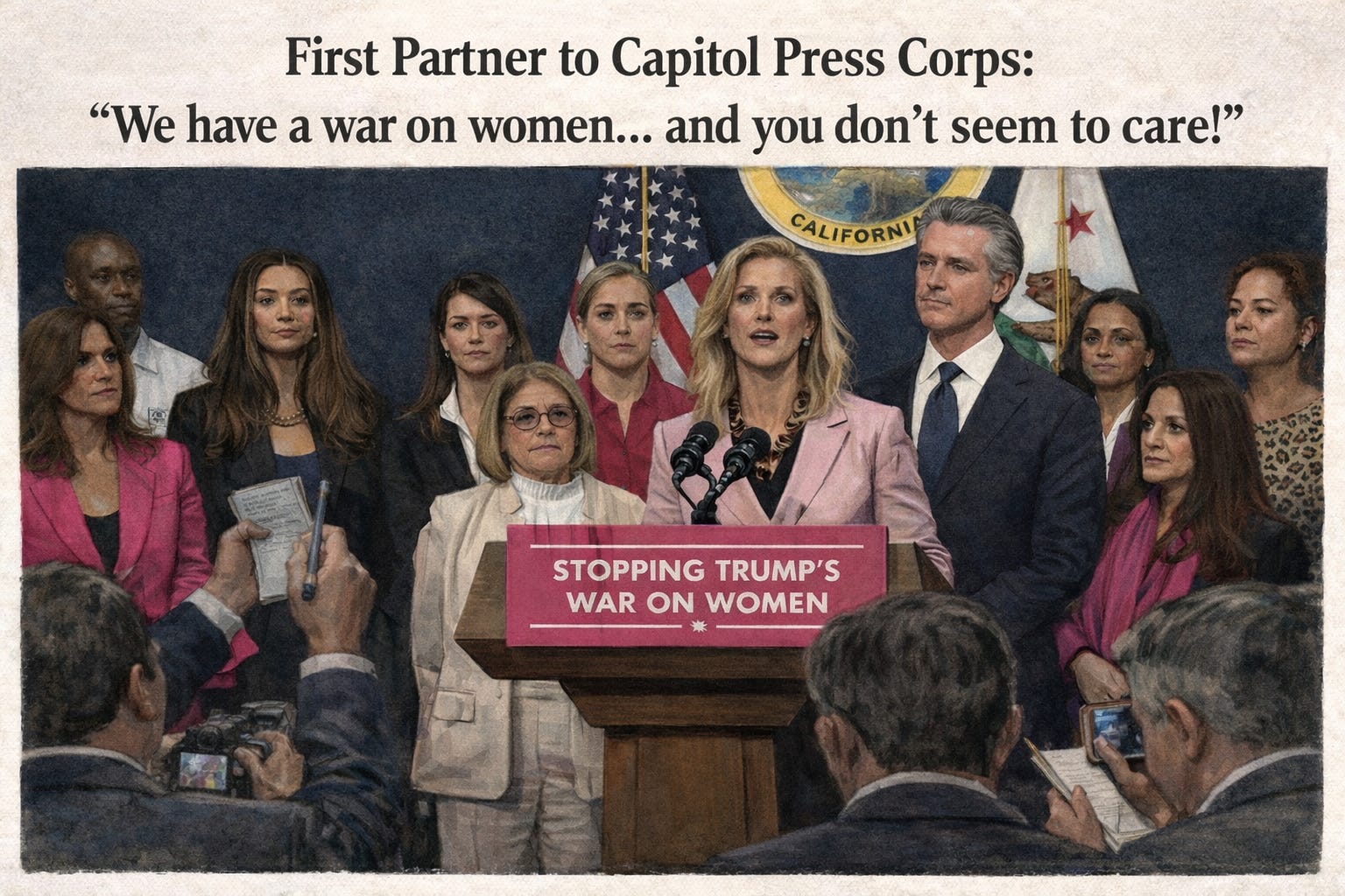 If you aren’t constantly refreshing social media feeds about what is happening at the State Capitol, I'll tell you what happened yesterday: it is somewhere between an eye-roll moment and a question of how the Governor’s wife can be so naive. Jennifer Siebel Newsom is the First Lady of California, but she prefers to be called the First Partner. Fine. If she prefers to be identified as a partner rather than as a woman, I will respect her wishes. But there is some irony as this post is about not wanting to be called a First Lady while she is losing her cool at a press conference at which Governor Newsom signed a bill handing 90 million dollars to Planned Parenthood of California.