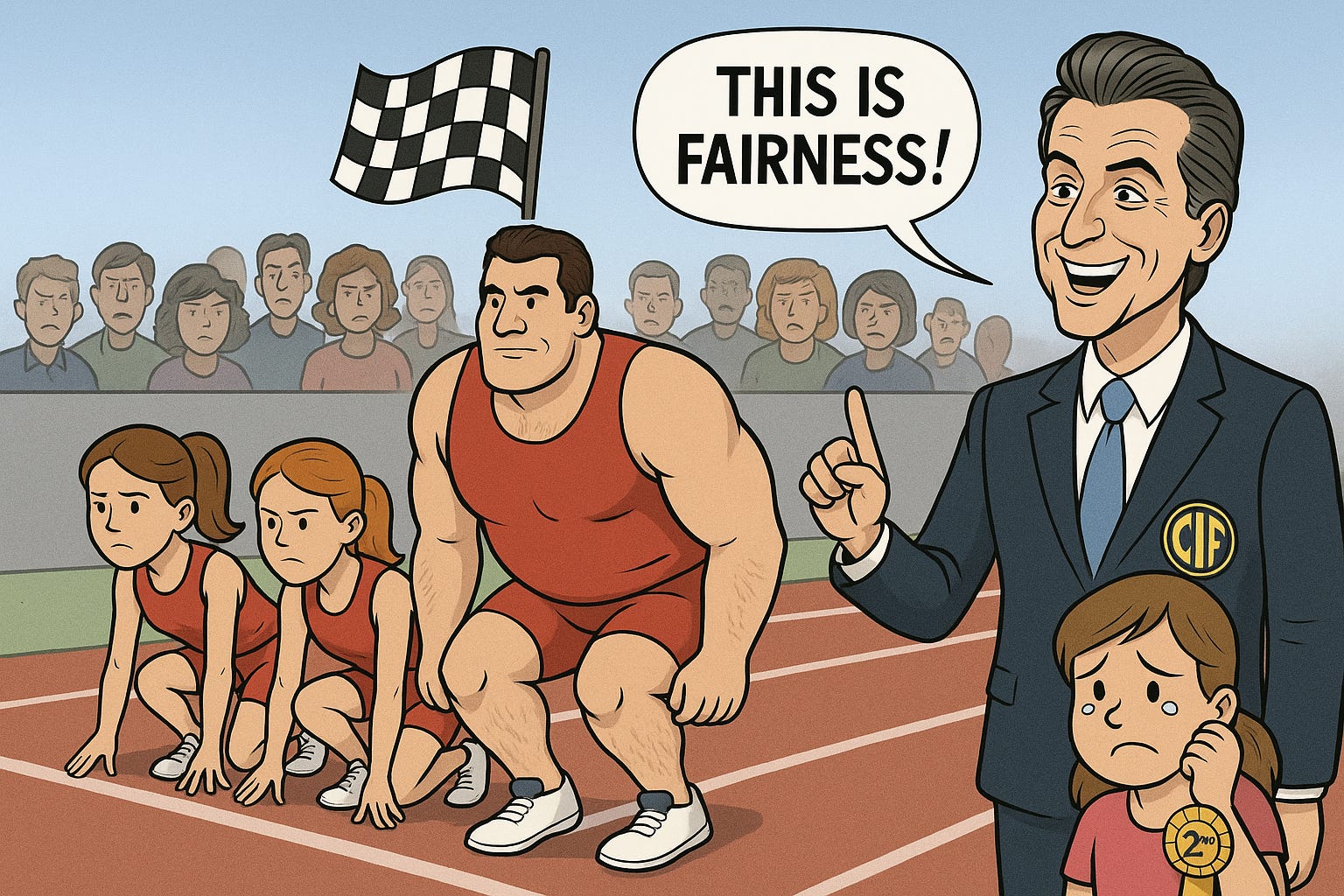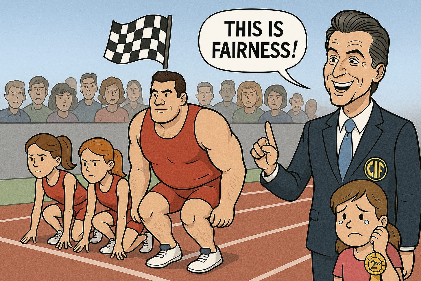 Newsom's latest podcast statement to Charlie Kirk that trans involvement is "deeply unfair" was a fleeting nod to reality. His inactivity screams indecisiveness. The CIF's new rule, to which he gives his endorsement, excludes no biological males from women's sports. It merely adds some female-born competitors who just missed the mark but leave the inherent injustice intact. This is not better; it's a cruel joke. Why do girls, years upon years of striving to excel, need a "pilot program" to battle for a place they've earned? As my Substack article, "Six Reasons Biological Males Should Not Compete in Female Sports," argues, this compromise destroys fairness, safety, and opportunity. It's not just about medals—it's about the privacy of the locker room and the psychological impact of having to compete against unequal numbers.