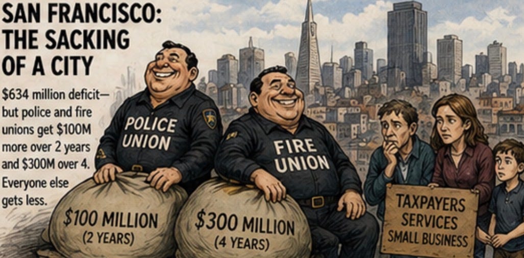 This is not fiscal discipline. It is municipal self-dealing dressed up as public necessity. San Francisco’s political class spent years building a government it cannot afford, only to discover that the loudest and most politically protected interests still get fed first. Ordinary taxpayers, small businesses, and basic services are left to absorb the consequences. The city is not being mismanaged by accident. It is being sacked one contract, one concession, and one politically convenient excuse at a time.