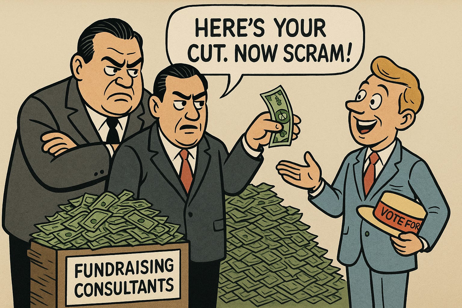 This isn’t just financial misconduct — it’s moral fraud. Millions of well-meaning citizens on both sides believe they support candidates and causes they care about. They’re not. They’re fueling a self-enriching machine that makes sure that the consultant class makes a ton of money, and in the meantime the candidate’s campaign is getting only a fraction of what has been contributed by a well-meaning donor.