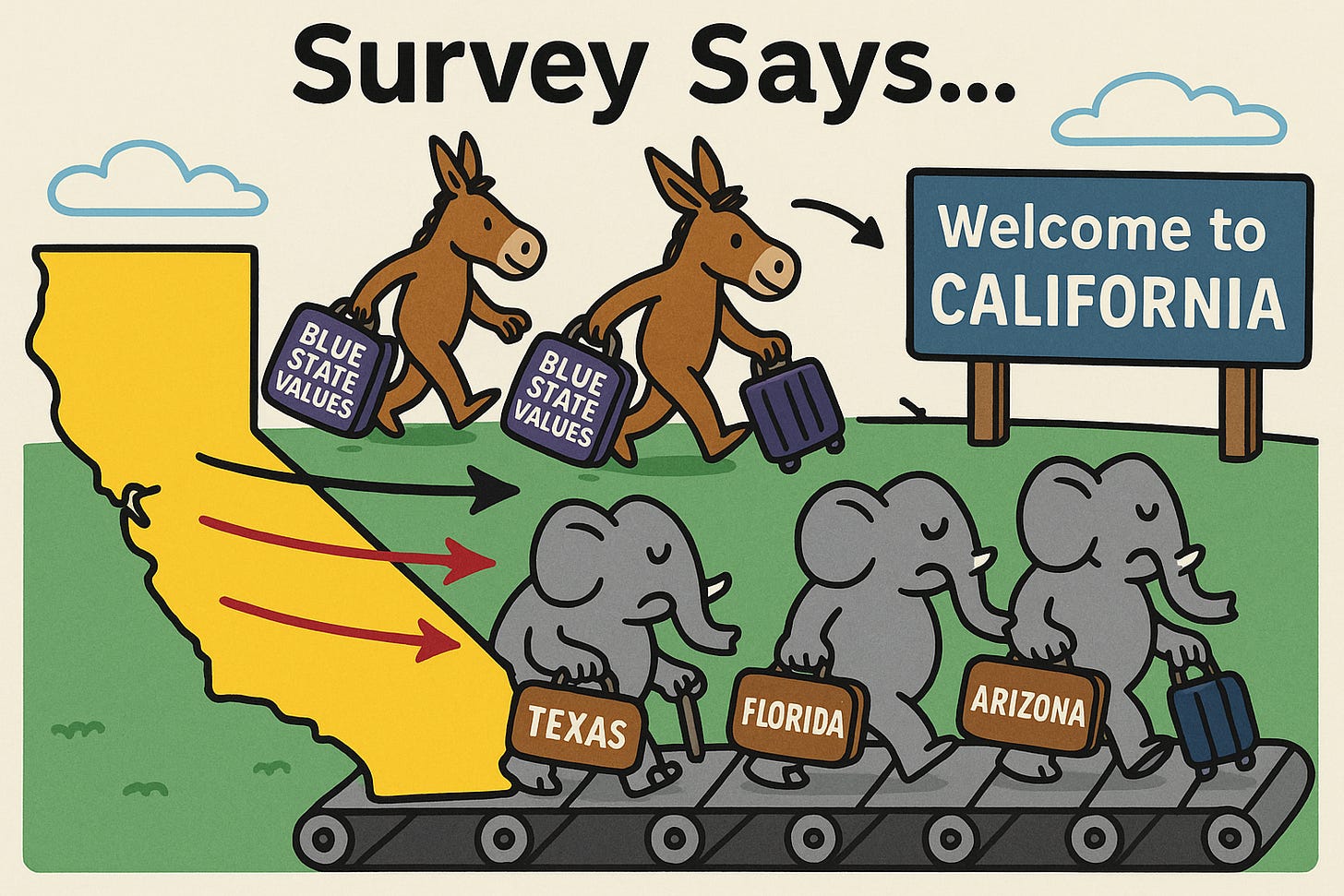 Turns out that the data show us that more Republicans are leaving California, and more Democrats are coming here. The Public Policy Institute of California has released a report showing that of those leaving California, conservatives make up the lion’s share — heading to red states. But also liberals are being attracted to this big blue state. What does it all mean? I unpack it here.