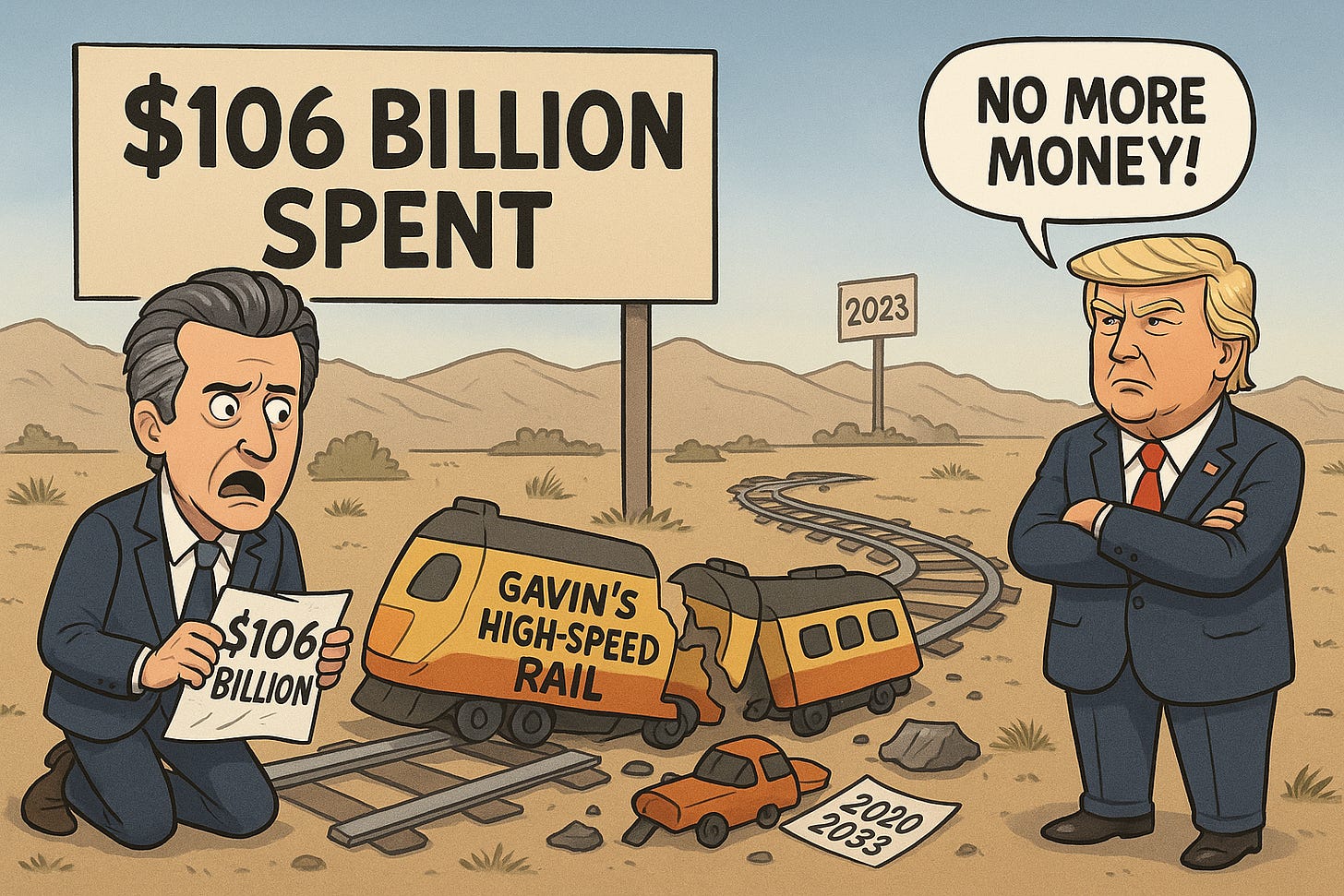 Federal Government to California: No More Federal $ For High Speed Rail. We knew it was coming, but this last week the federal government officially pulled the plug on federal taxpayer funding of Gavin Newsom’s controversial, and overwhelmingly expensive “high speed train to nowhere” project. All of the details are here…
