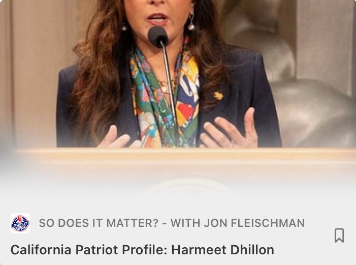 A new weekly feature for Does It Matter? - A profile of a prominent California conservative patriot. This week our champion is Assistant U.S. Attorney General Harmeet Dhillon…