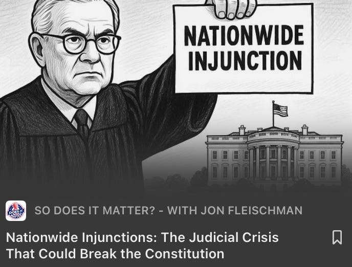 Finally, what would some of our nation’s founding father have to say about today’s national lawfare? Specifically, this growing phenomenon where local federal judges are issuing “national injunctions” stopping nationwide policies, is pretty outrageous. I dig in with some depth here, so please take a read!