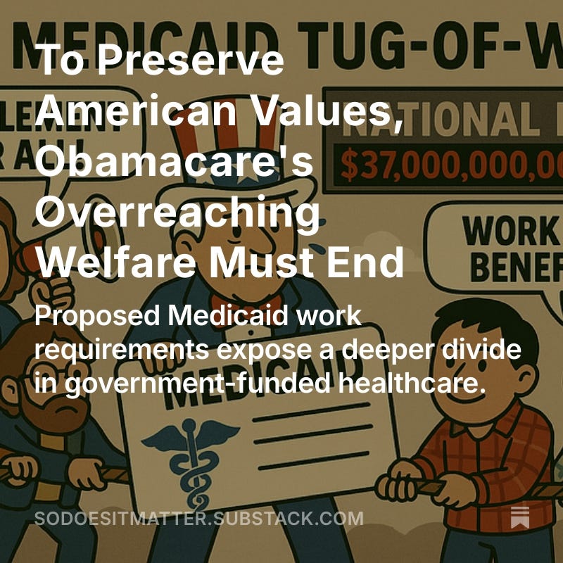 Is government-funded healthcare a right? It’s time to repeal the expansion of Medicaid from Obamacare. My weekend commentary goes into the whole argument for why the changes in Medicaid in the “One Big Beautiful Bill” — while not enough — are a great step towards reduce some of the welfare that was in the partisan-Democrat Obamacare Law