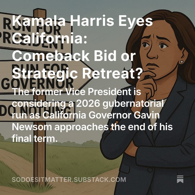 Will Kamala Harris run for California Governor? My in depth analysis of the decision in front of her. Some of the factors she may be considering. And what will it do to the race?