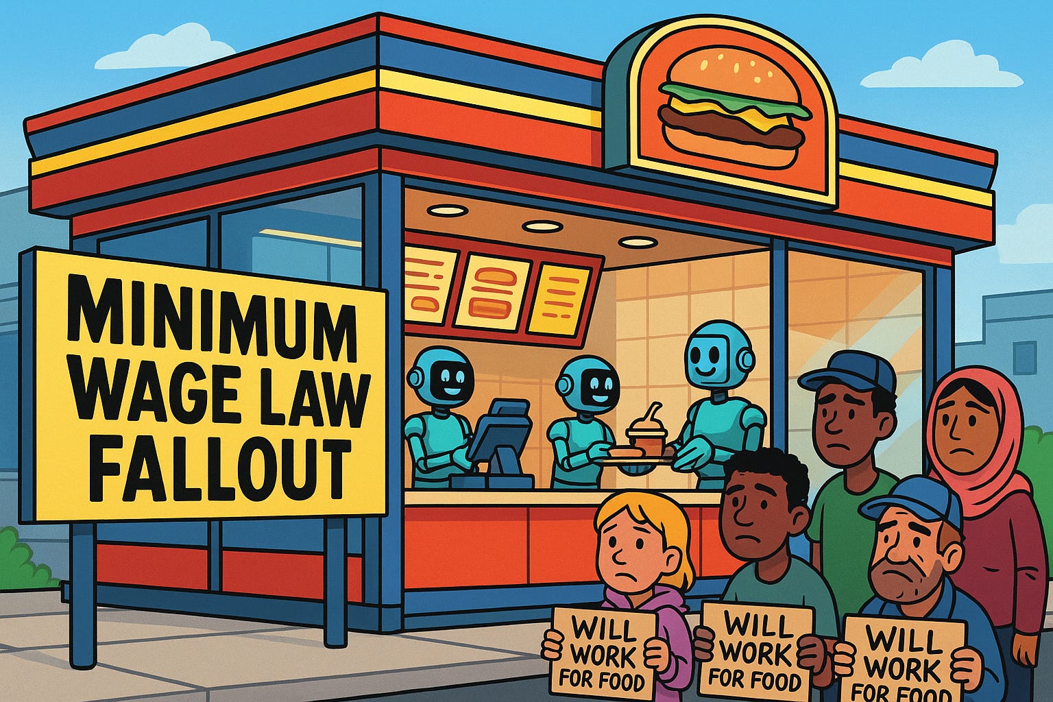 Minimum wage hikes often price out low-skilled workers, reducing entry-level jobs. Studies show a 10% wage increase cuts teen and young adult employment by 1-2%. In California, the $20 fast-food wage led to 16,000 job losses since September 2023, per the Employment Policies Institute, though some studies report stable employment. Employers, unable to afford higher payrolls, hire fewer workers, leaving vulnerable groups sidelined.