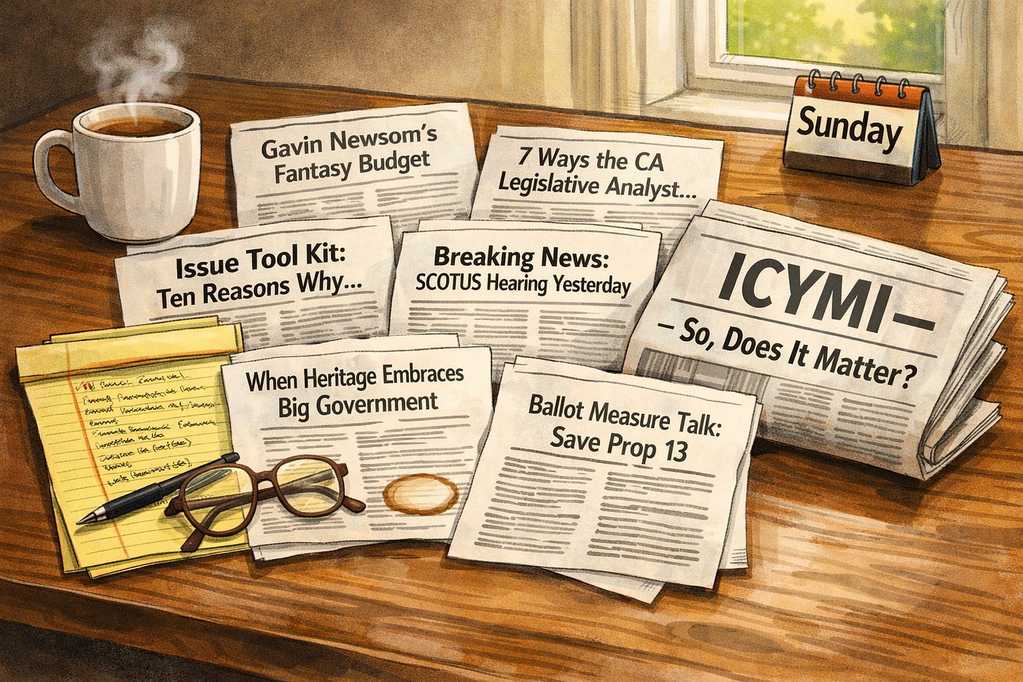 This Sunday ICYMI edition is always free for all subscribers and visitors to this Substack page! Thanks for being a part of this look at CA politics!
