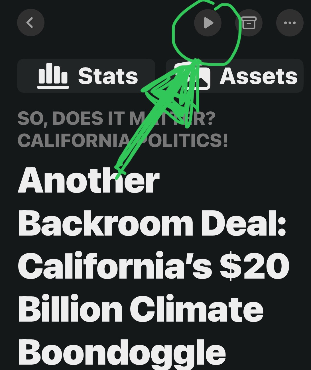 PRO-TIP! If you use the Substack App, you can actually LISTEN to my columns, so if you are out running around, are in the car, or it’s just easier to do that, you have that option. Just hit the Play button!
