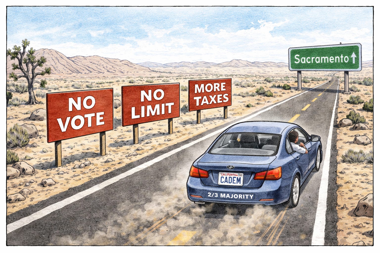 For taxpayers, the implication is straightforward: the people running this state no longer need your permission to raise taxes. Because Democrats hold more than two-thirds majorities in both the Assembly and Senate, they can pass tax increases on their own without going to the ballot. No statewide vote and no direct taxpayer check before new taxes are imposed.