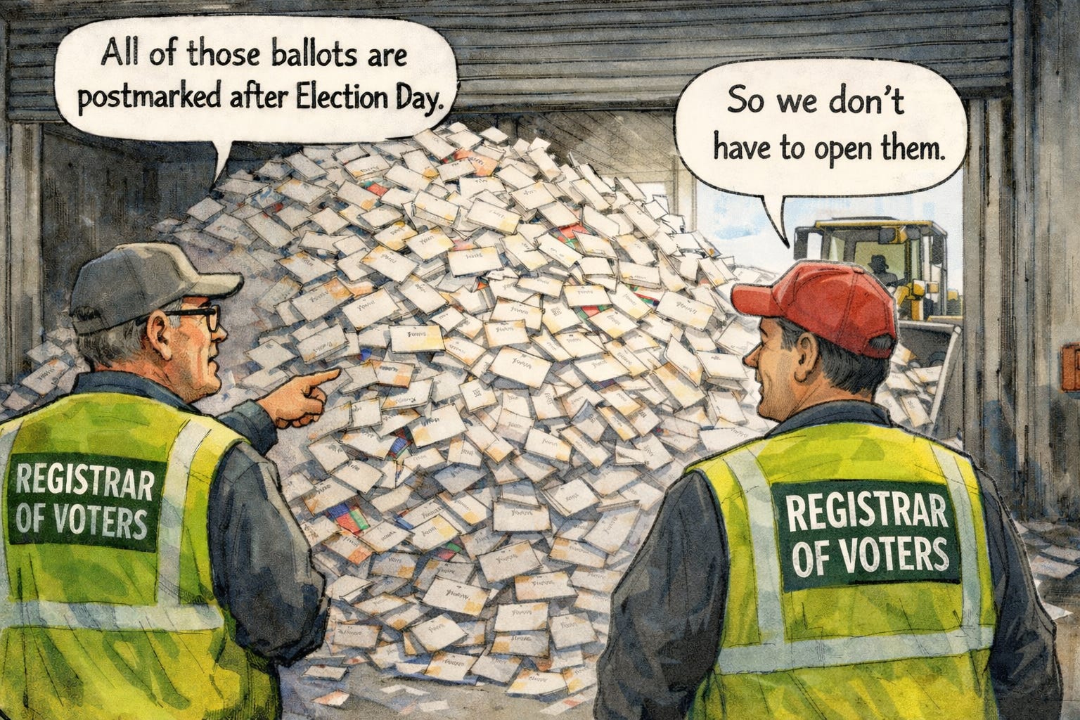 This is hugely problematic for states like California that have gone virtually “all in” on mail-in balloting.