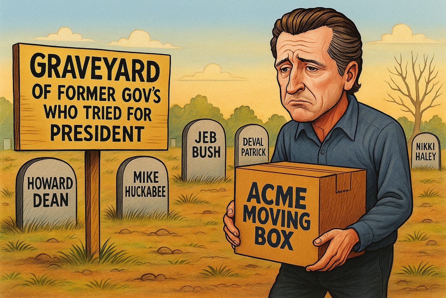 With the end of next year comes Gavin Newsom’s brick wall. Once Newsom leaves office—nearly two years before the 2028 Presidential election —he becomes just another ex-governor trying to stay relevant. It’s a good thing for Newsom that this has proven to be such a great launching pad — not. History is not kind: think Howard Dean, Mike Huckabee, Jeb Bush, John Kasich, Deval Patrick. Mitt Romney is the rare exception—even he lost the big one. Without an office, the microphone gets quieter. A lot quieter. Prop 50 rallies and meme-ready jabs may trend for a day, but ex-governors get drowned out by people who actually hold power.
