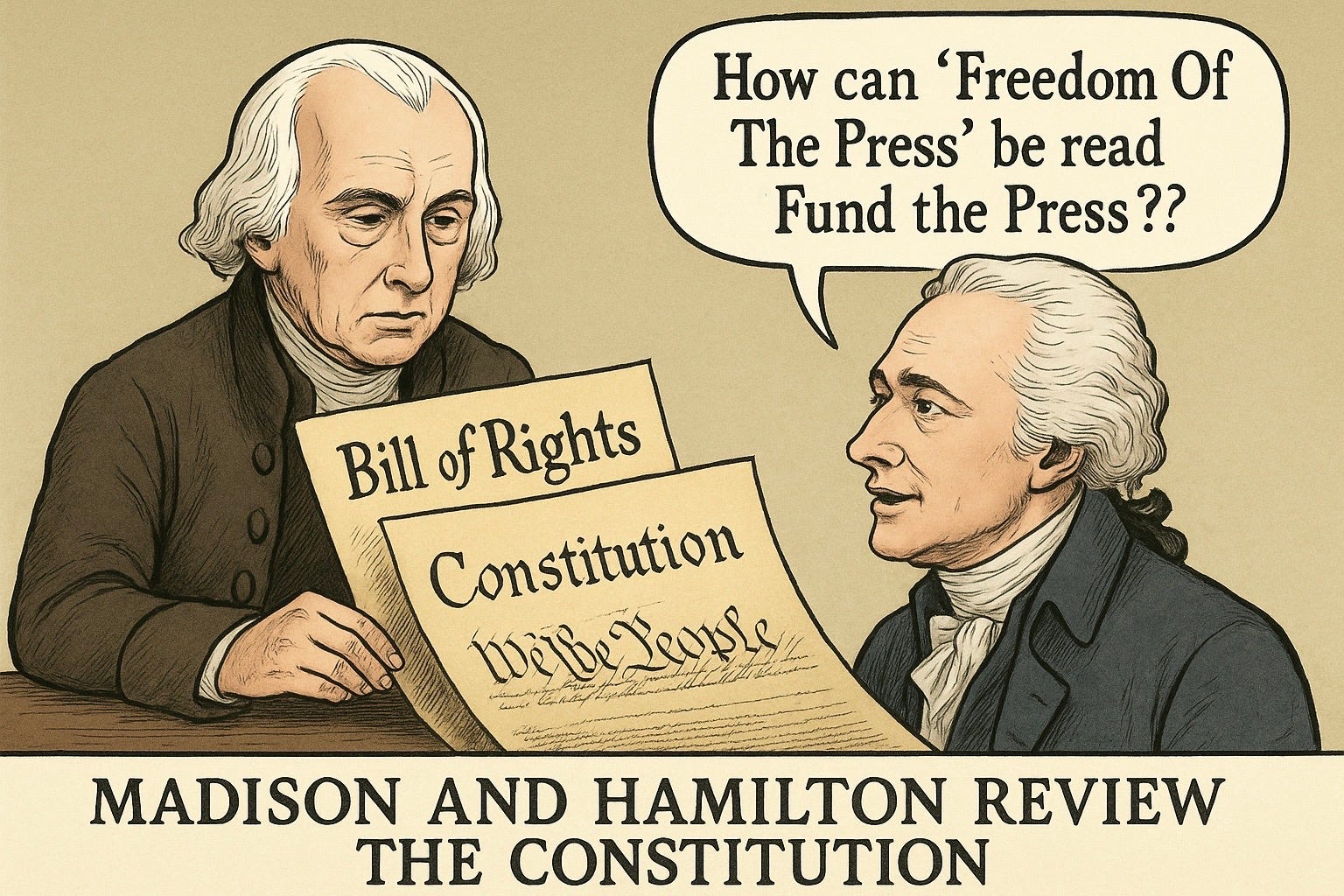 The Founding Fathers deliberately constructed federalism as a bulwark against unchecked federal power, intentionally reserving the vast majority of governmental authority to individual states and citizens. James Madison clarified this principle in Federalist No. 45: "The powers delegated by the proposed Constitution to the federal government are few and defined. Those to remain in the State governments are numerous and indefinite.” Alexander Hamilton reinforced this concept in Federalist No. 17, observing that citizens “will be more attached to their respective state governments” rather than an expansive federal bureaucracy that exceeds its proper boundaries. Media funding does not appear on the list of legitimate federal responsibilities—if such funding serves any public purpose, it belongs at the state level or within private hands.