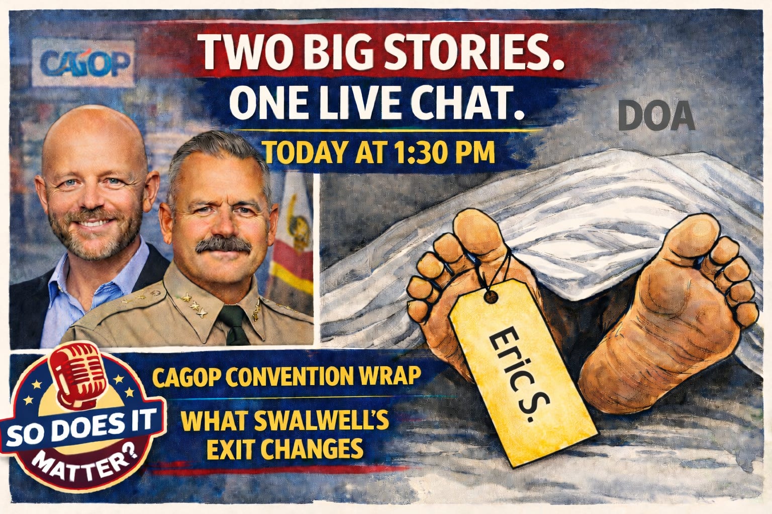 Reminder: Going Live! Today at 1:30 PM - CAGOP Conv. Wrap - And Gov’s Race Sans Swalwell
