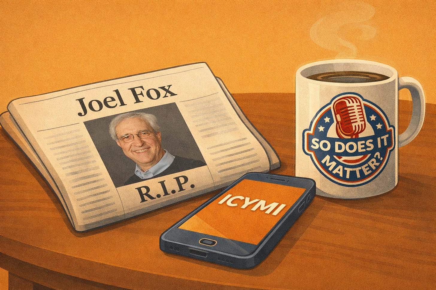The “So, Does It Matter?” Substack featured a lot of great, original content this past week. Below are the highlights along with some thoughts on the passing of Joel Fox.