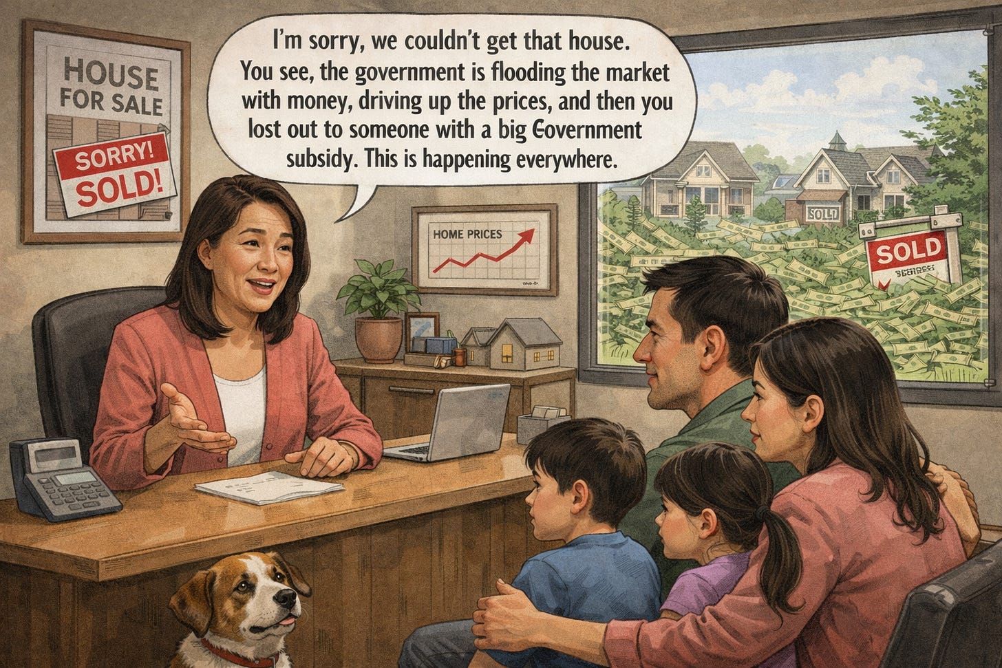 If government policies make housing scarce, subsidizing buyers does not make housing affordable — it just makes the next house more expensive.