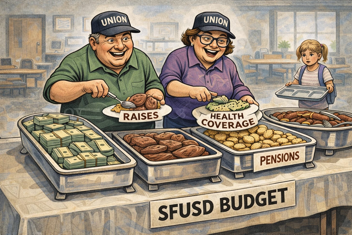 Let’s be honest about the moment. With SFUSD facing major structural deficits and planning deep cuts just to stay solvent, it may not make sense to offer raises at all (let alone ask employees to take reductions). In a shaky economy, where private-sector workers are facing layoffs, hiring freezes, and uncertain pay, the notion that public employees should automatically come out ahead warrants scrutiny.