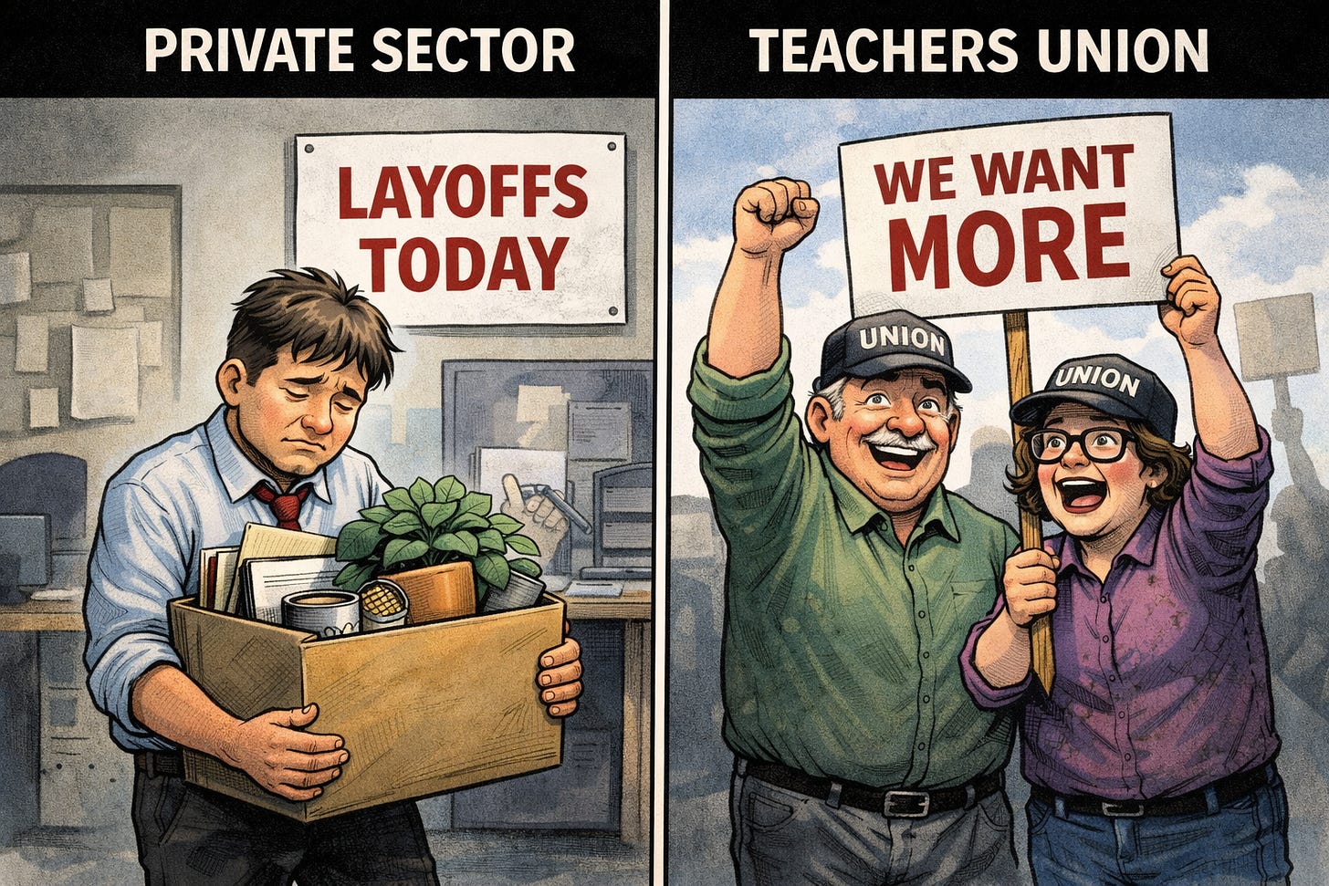 That mindset doesn’t reflect the economic ups and downs everyone else lives with. It reflects a system where public employees are largely insulated from them.