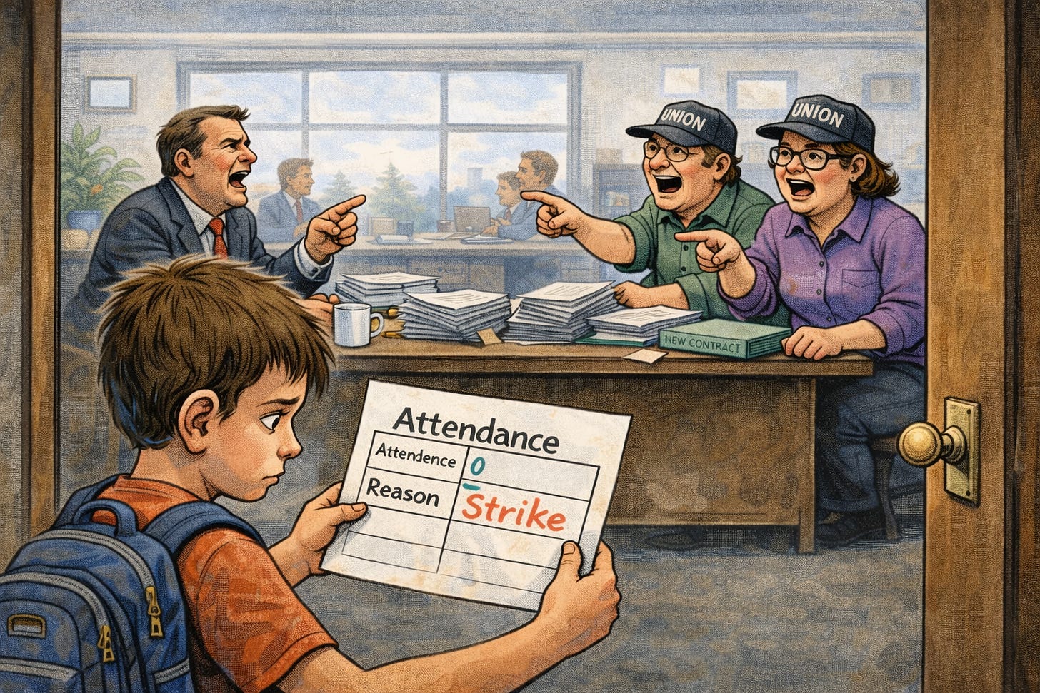 And it points to a larger problem. When a public system operates without real competition, the incentives tilt toward the adults who work in it rather than the families who depend on it. A structure that leaves parents with few alternatives makes it easier to use school closures as leverage. That power imbalance — not just this contract dispute — is what allows situations like this to occur in the first place.