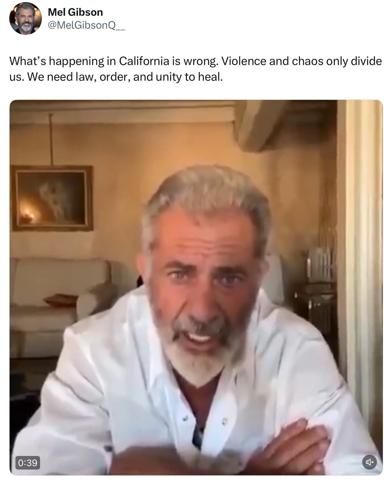 Finally, Mel Gibson has a message for his fellow Angelinos… (Click here to get to the short video!)