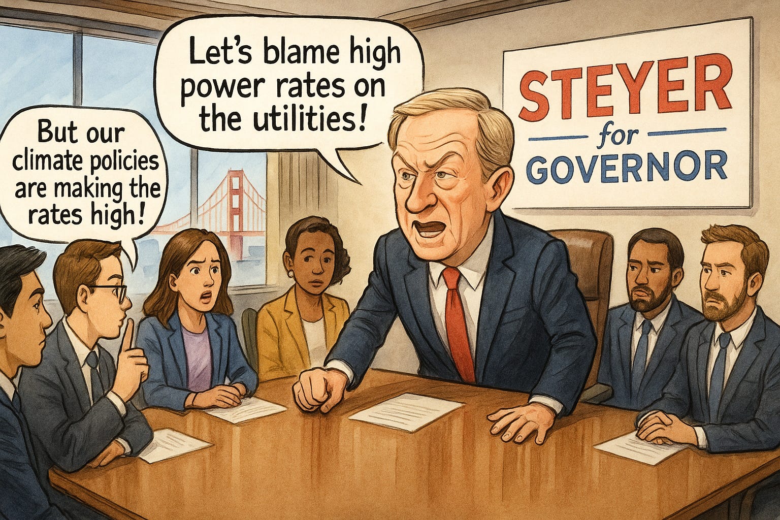Yet Steyer would have voters believe the real culprits are private utilities, as if state regulators do not sign off on every rate hike, every capital project, and every new cost layered onto the system.