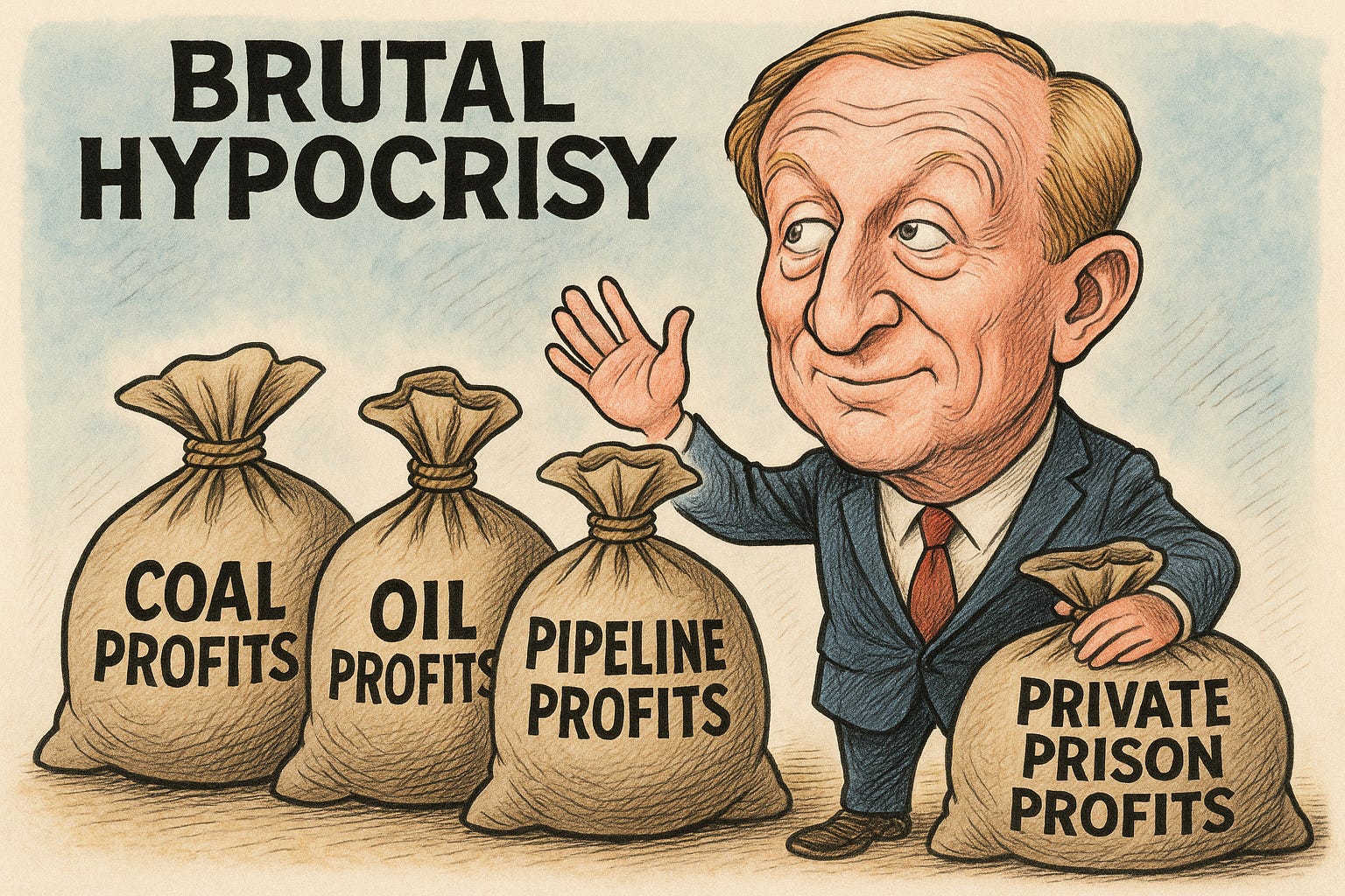 Before Steyer discovered his inner Greta, he spent 25 years at Farallon Capital aggressively investing in coal, oil, gas, pipelines, and even private prisons. Not dabbling — profiting massively. Farallon poured billions into coal mines across Indonesia and Australia, expansions that helped accelerate Asia’s coal boom. It held huge stakes in oil sands operations, offshore drilling, and one of the largest pipeline operators in North America. And while Steyer now rails against mass incarceration, Farallon shoveled nearly $90 million into the country’s biggest for-profit prison company.