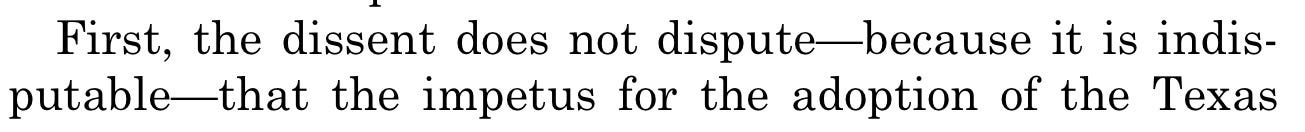 Yesterday the U.S. Supreme Court ruled that for 2026 the newly redrawn lines in Texas that boost Republicans will be used. That’s good news for the GOP in Texas and nationally. But a closer read of the majority decision, authored by conservative Justices Clarence Thomas, Sam Alito and Neil Gorsuch, made it clear that they see the California redraw as purely political. The legal case to challenge it largely hinges on convincing the courts that there was a racial motive to the changes. Both can be true of course, but you can be sure the three Judges hearing the California case will have read this new decision from the court with much interest. See the images below…