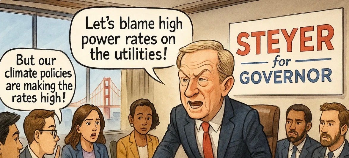 The billionaire environmental activist is now asking voters to believe he is the antidote to the very policies he spent years financing. After bankrolling the climate-change alarmism that drove California’s energy prices far above the rest of the nation, he is attempting a political makeover. His latest rhetoric works hard to obscure the direct link between those policies and today’s crushing utility bills. The rebranding may be convenient on the campaign trail, but the record is clear—and it is costly for ratepayers.