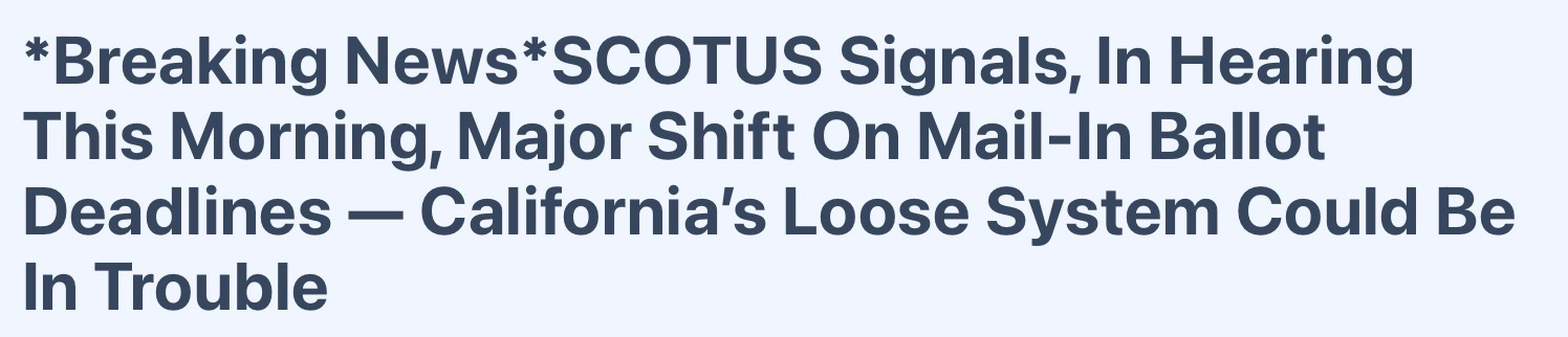 After years of drawn-out counts and shifting outcomes, the time has come to reassert a basic principle: Election Day should actually mean something. Based on the questions asked by multiple justices during oral arguments, court watchers — including the non-partisan SCOTUSblog — believe it is likely the Court will interpret existing law to require that ballots be received by Election Day to be counted. That would bring needed clarity, restore finality to election results, and help rebuild public confidence in a system that has too often left voters waiting and wondering.