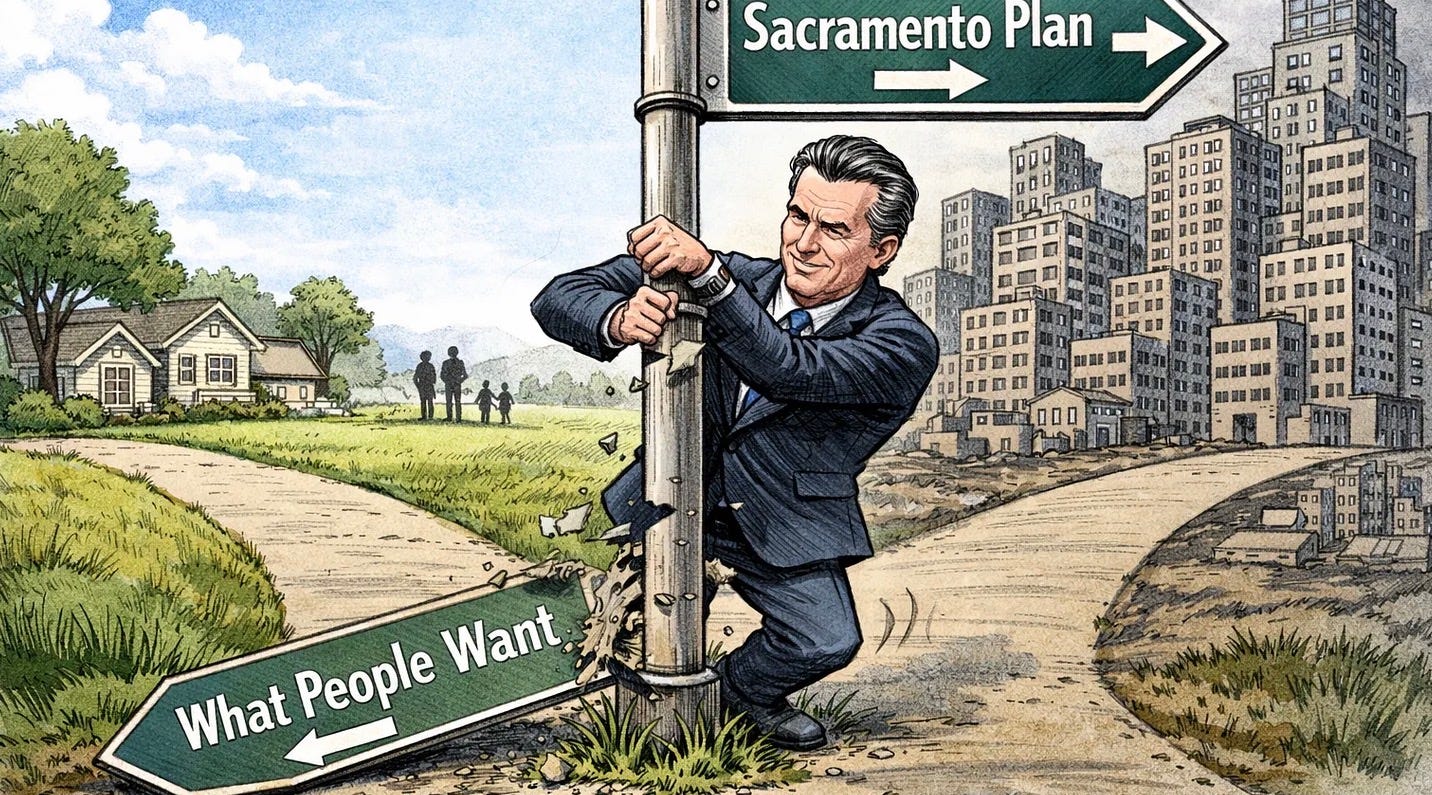 A new Pew survey confirms what most Americans already know instinctively — they want more space, not less. But Sacramento Democrats continue to double down on a one-size-fits-all housing agenda that prioritizes dense, urban development whether communities want it or not. Their policies ignore voter preferences and instead reflect ideological commitments to high-density living, effectively sidelining the very people they claim to represent while worsening public frustration with California’s housing direction.