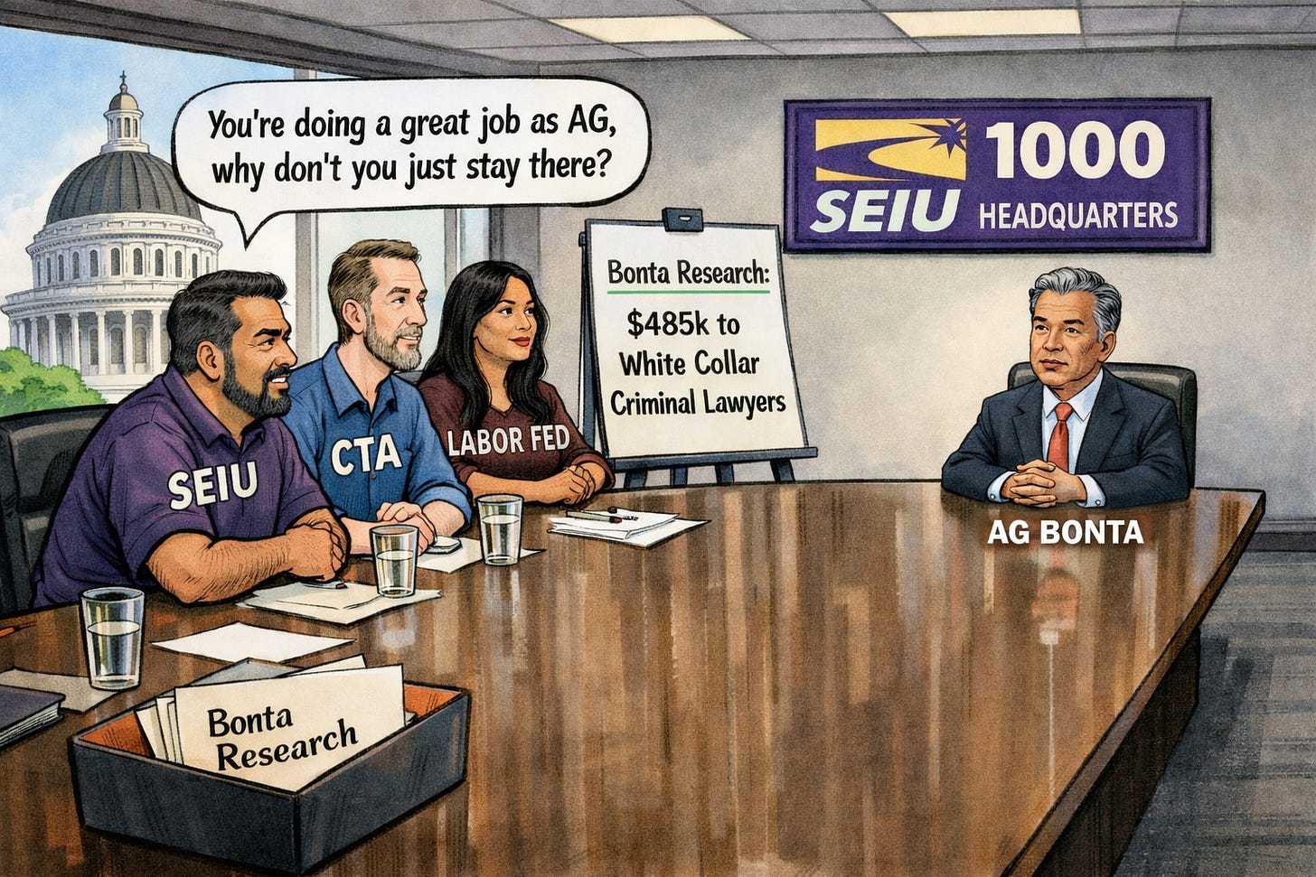 Attorney General Rob Bonta is a loser this week for declining to run for governor in an otherwise mediocre 2026 field. Despite encouragement from party circles, he opted to seek reelection, leaving the statewide contest without a potential unifying Democratic figure for powerful public employee unions, which now appear fractured. The decision follows reports of hundreds of thousands of dollars in campaign payments to a white-collar criminal defense firm, a detail that may have cooled private labor support and narrowed his political runway.