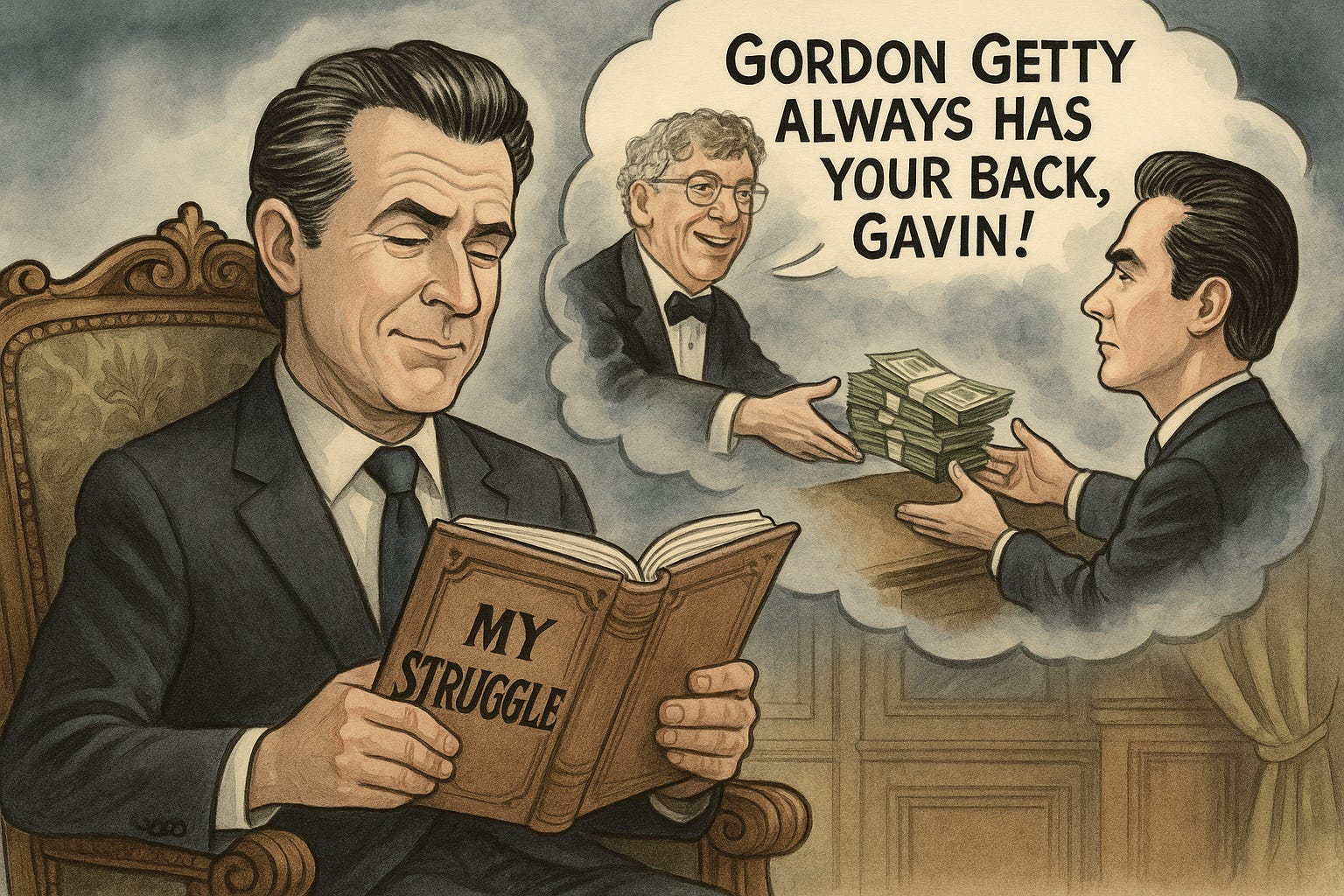 In his new book, Newsom struggles to portray a life of privilege as a story of adversity, relying heavily on a narrative of being merely “wealthy-adjacent.” That framing falls apart even under mild scrutiny. He grew up with elite access, influential connections, and a billionaire mentor in Gordon Getty, a close friend of his father who helped open doors, fund ventures, and boost his career. If you’ve ever listened to someone speak for nearly three minutes without understanding what they said, watch this video Newsom released about the book. Here’s my video on this loser of the week…