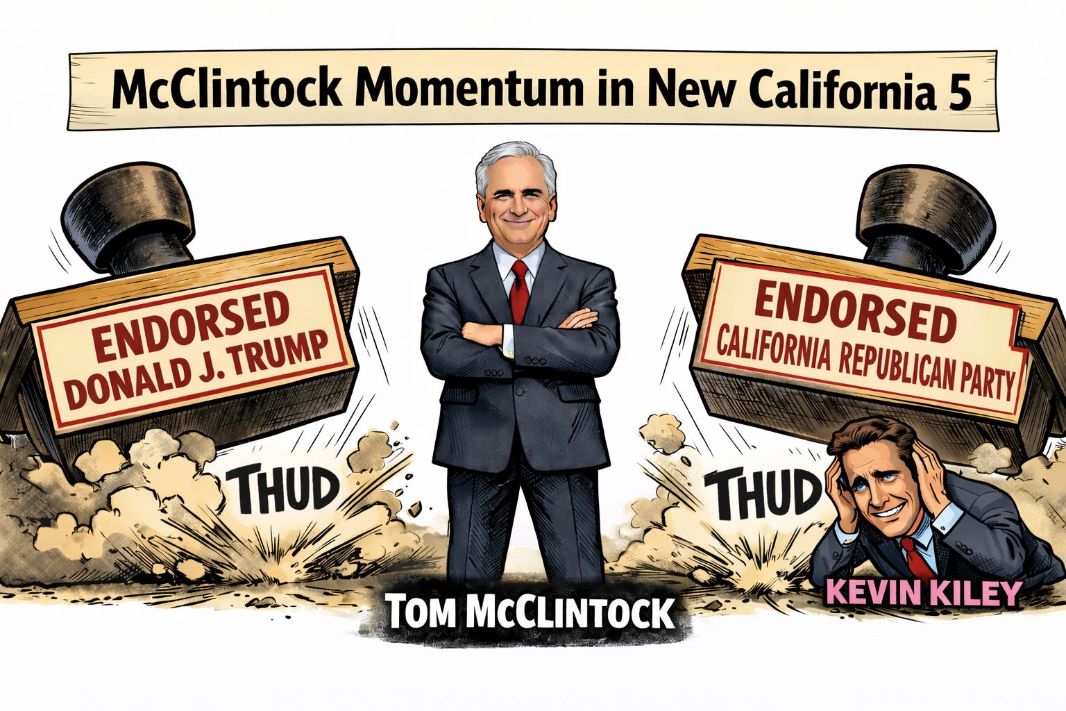 Last night’s overwhelming endorsement by the California Republican Party Board of Directors for re-election in the newly drawn 5th Congressional District is a decisive show of institutional strength. He already represents around 75% of that seat, giving him a substantial built-in base. With rumors swirling that Congressman Kevin Kiley — whose current district includes less than 5% of this territory — is eyeing a challenge, pairing the state GOP endorsement with President Trump's recent endorsement sends a clear signal. The party leadership and national movement are aligned behind McClintock. My friend Kevin Kiley really should not be running in this district, and hopefully will not.