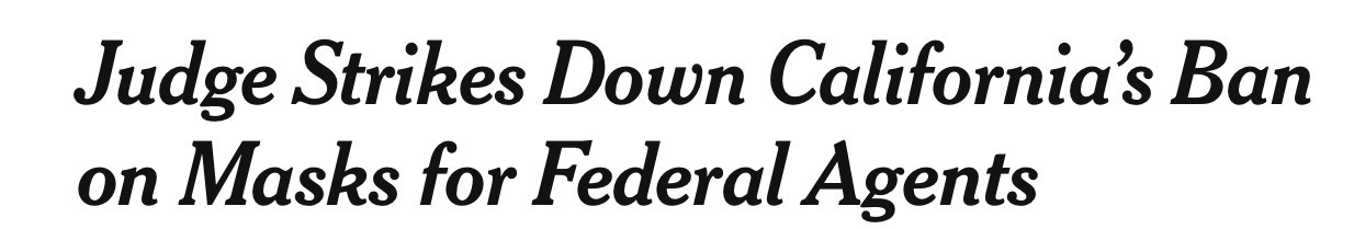 His high-profile bill targeting the use of masks by ICE agents — framed as a “public’s right to know” transparency measure — was just blocked by a federal judge, halting enforcement. The ruling didn’t just question federal overreach; it highlighted the hypocrisy of carving out an exemption for California Highway Patrol officers while singling out federal agents. That selective transparency undercut the bill’s stated principle and strengthened the argument that it was political theater. Now it stands as a courtroom setback instead of a legislative victory. Of course, loser Weiner is already talking about making changes to this terrible bill and passing it again.