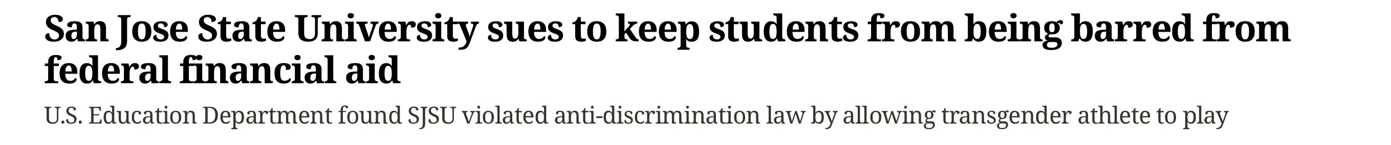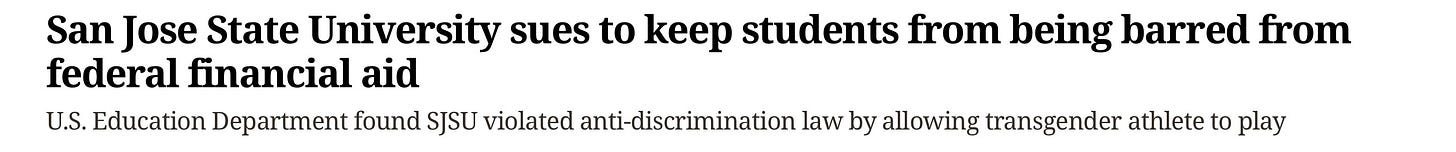When federal investigators concluded that San Jose State University violated Title IX in its handling of a transgender volleyball player competing on the women’s team, the university’s leadership faced a choice: address the concerns of female athletes or fight Washington. Instead, the president chose litigation. By suing the federal government rather than correcting course, the university has reinforced the criticism that protecting ideological positions now takes precedence over protecting women’s sports and the equal opportunities Title IX was meant to guarantee.