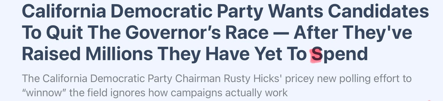 ⬇️ LOSER: RUSTY HICKS, CHAIRMAN, CALIFORNIA DEMOCRATIC PARTY