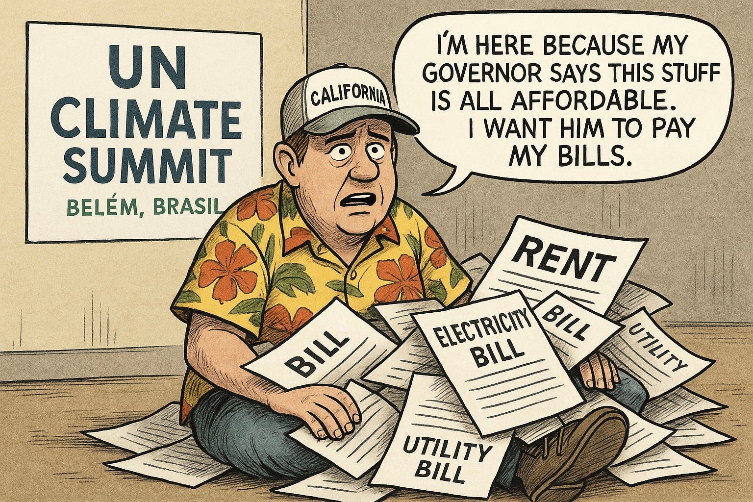 Turning California’s affordability crisis into a global spectacle, the governor jetted off to a United Nations climate meeting and preached new taxes, fees, and regulations—while homegrown Californians are already pinched from skyrocketing housing, energy, and living costs. All while saying these costly policies can be packaged as bringing affordability. His climb-on-a world-stage strategy ignores that imposing further burdens on families and small businesses serves ideological liturgy, not economic relief. When climate zeal trumps fiscal empathy, voters paying the bills become the real collateral.